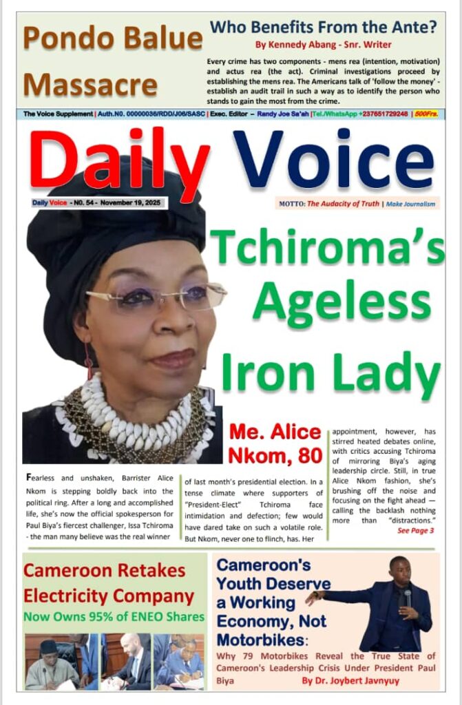 Trending News: Daily voice newsDaily voice News PaperDaily voiceDaily VoiceDaily VoiceVote Biya or You’re ThievesWhere and when the gatekeeper cannot give account – the Case of Wara Pius TseViolence in the Cameroons was predictable at independence in 1960Urgent Call for Minimum ChangeELECAM’s Candidate List Ignites FirestormOctober Election Fears‘Peoples’ FederalismThey Killed Him 7 Years AgoMilitary Judge Clears 70-Year-Old of “Terrorist” ChargesDaily VoiceManka’a Fashion HouseSamuel Eto’o Embroiled in Embezzlement Allegations:“My Mission is a Call to Service!”Letter to Media Professionals, Social Media Influencers in CameroonTRIBUTE TO MONSIGNOR CLEMENS NDZE (1931–2025)Coming SoonYoung Leaders Shaping Cameroon’s FutureTurning Plastic Waste into Pure GoldBarrister Claude Assira Slams Gov’t TacticsAmerican Style Nursing Training Opens in Limbe-CameroonHealth ReminderNew Health Clinic Set to Revolutionize Healthcare for Aghem CommunityValidating Health Promotion Materials Against Unhealthy Foods in CameroonA Path to Peace, ResolutionBuea, Bamenda Youths in AgonyGov’t gaffe rallies Kamto’s ranksImpunity’s New FaceCourt Frees 2 Anglophone Female Teachers After 16 Months in PrisonNew Gov’t Pass Mark for Ntarikon Credit UnionProtests in Douala vs. Anglophone Zones2025 Elections to Fix Cameroon’s “Upside Down” Democracy?Indian Aid Arrives, But What’s the Plan for Tomorrow?African Countries Are Saving NaturalHere’s weeks best fashion InstagramsEverything You Need to Know About FashionPondering How To Form Your Hairdo Shake?An Incredibly Easy Strategy for EverybodyThe best fashion blogs giving usA Beautiful Sunday MorningNow you will complete your thoughts safely5 Simple Ways You’ll Be able Turn Future Into VictoryThe meaning of wellbeing has advanced over timeMelodic is lovely simple music4 thoughts to keep you sound and solidThe display before us was in fact grandShow slams brands after scrolling off photoshootMoment Pot Formulas That Make Meals PartTruths About Trade That Will Help you VictoryBest Mold stories from around the net you might have missedWhat Can You do Almost Mold Right PresentlyCountry Are Battling To Spare TheirNovak requests in court against dearness Care cancellationWhere in the world can you visit ?How to have fantas tic trip without blowing your budgetPrepare dishes wisely and decorate with loveFor The Love of BandsWorking Together To InvestHere Are 5 Brands and Architects to See Out for Another